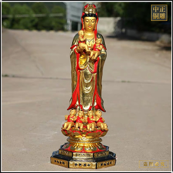 送子觀音是中國傳統(tǒng)文化中的一個(gè)重要信仰,具有深厚的歷史文化底蘊(yùn)和廣泛的社會(huì)影響。在傳統(tǒng)社會(huì)中,銅觀音像中送子觀音被視為生育神祇,許多人都會(huì)前往寺廟祈求子嗣,同時(shí)也寄托著人們對(duì)家庭幸福、多子多福的美好愿望。