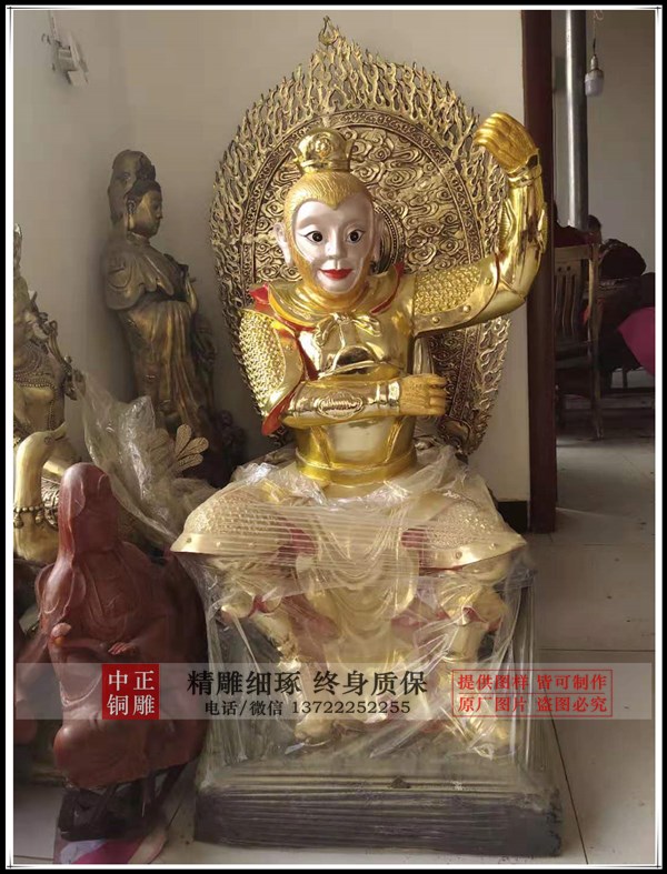 根據(jù)我國四大名著《西游記》改編的電視劇至今仍是經(jīng)典著作,由六小齡童主演的孫悟空至今仍舊是經(jīng)典,這件孫悟空銅雕,高1米表面貼金彩繪工藝,現(xiàn)已發(fā)往福建省羅源縣,有需要的客戶歡迎來電咨詢,電話:13722252255.